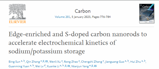 武科大网讯(通讯员李杰 见习记者韩延通)近日,我校化学与化工学院张琴副教授团队的研究论文“Edge-enriched and S-doped carbon nanorods to accelerate electrochemical kinetics of sodium/potassiumstorage”在《Carbon》期刊发表。张琴和张兵为第一作者,李轩科、张琴、杨年俊为通讯作者,我校化学与化工学院煤转化重点实验室为论文第一单位。